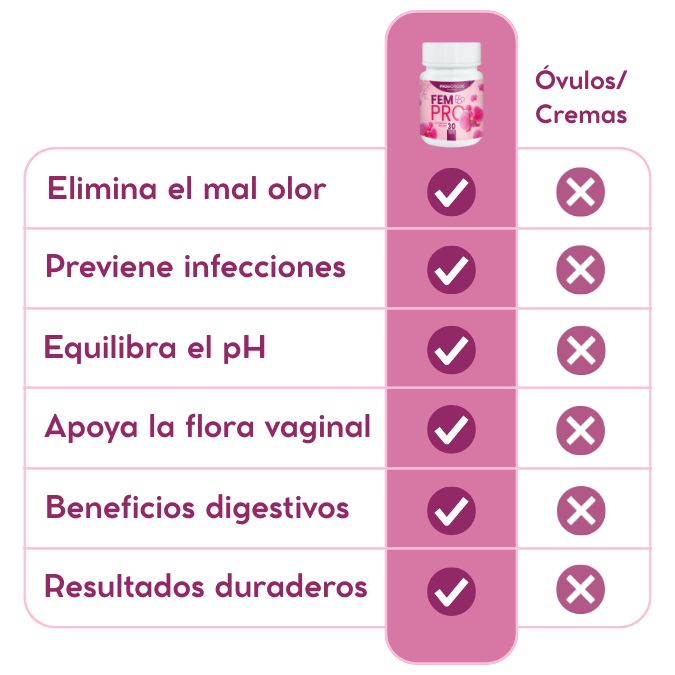 Sí. FEMPRO restaura el equilibrio de tu microbiota íntima, eliminando la raíz del problema y no solo enmascarando los síntomas.